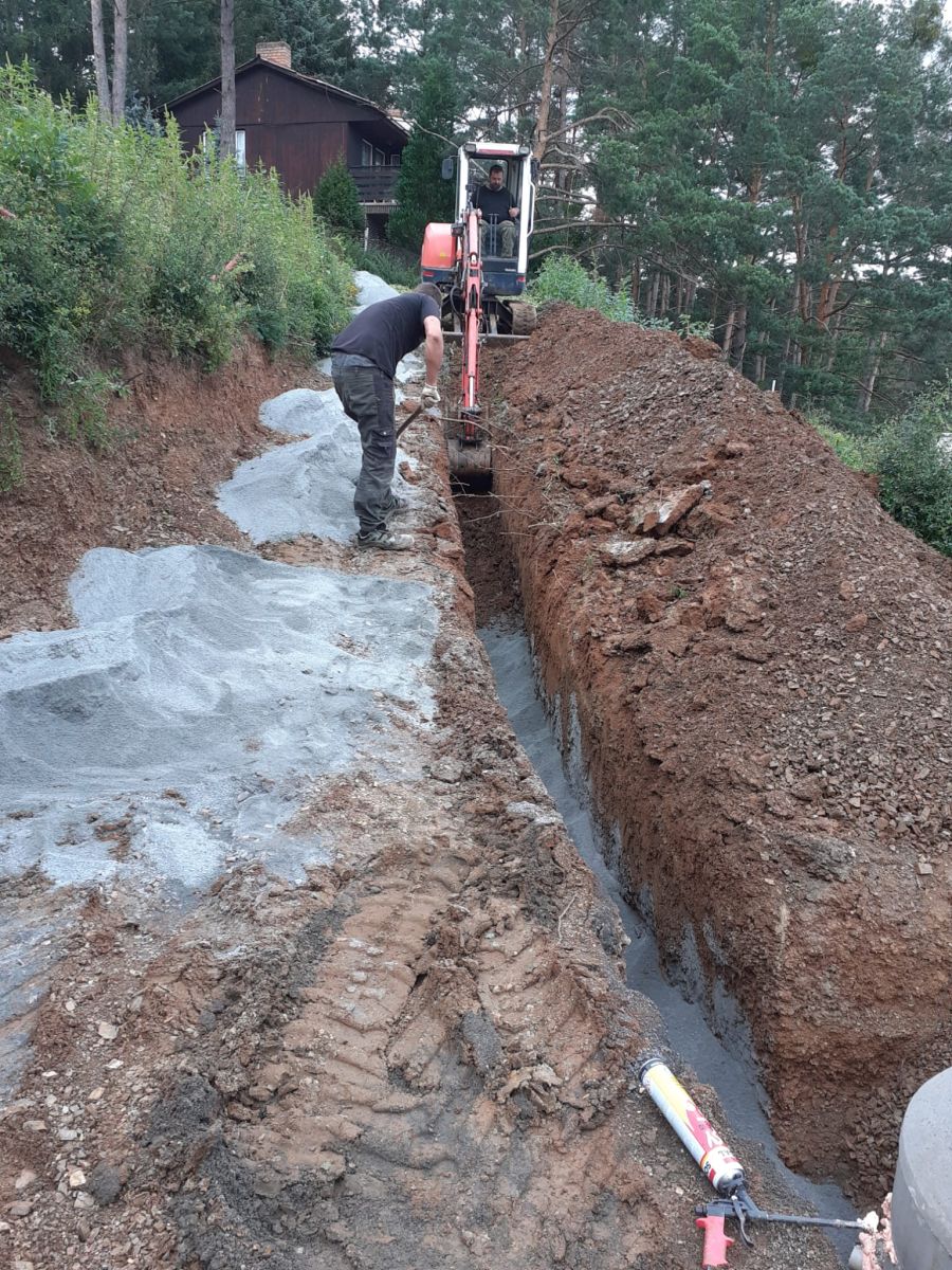 V návaznosti na komunikaci děláme i zahradní úpravy z naší vytříděné biozeminy. Montáž dopravního značení, průřez komunikací a zemní práce včetně ukládek.